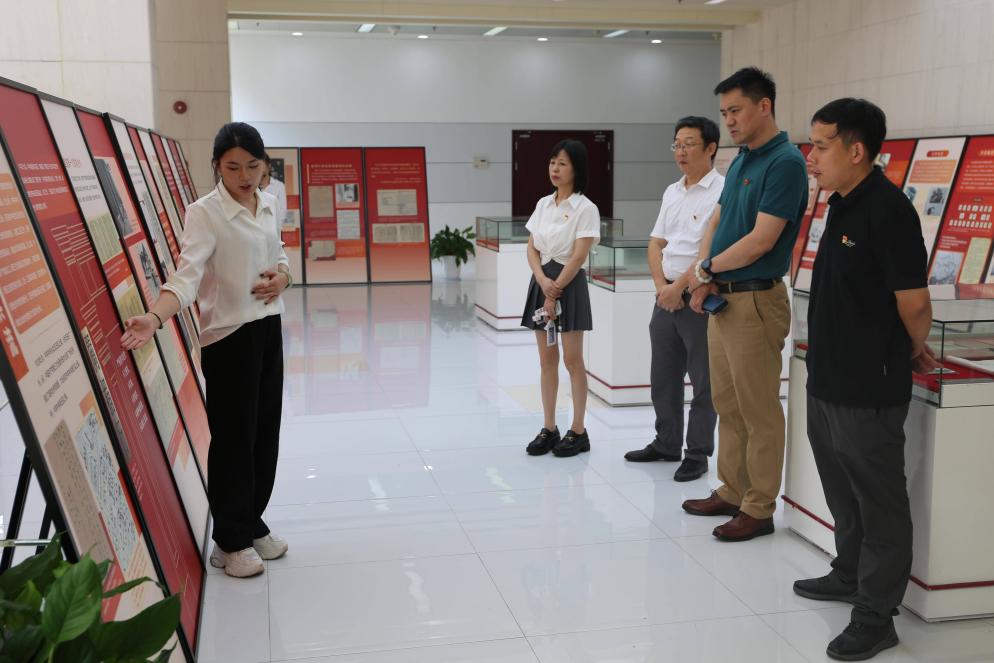 为深入贯彻落实习近平总书记“用好红色资源、赓续红色血脉”的重要指示精神,在建党104周年、建国76周年、抗战胜利80周年之际,10月15日下午,后勤实业发展中心党总支组织全体党员前往校第一图文信息中心一楼大厅(志宏堂门口)开展参观学习。