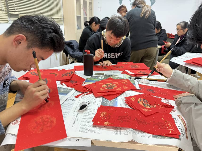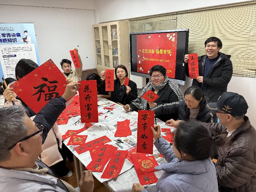 瑞气盈门迎新岁,翰墨飘香送祝福。为弘扬中华优秀传统文化,深化服务育人内涵,1月14日,后勤实业发展中心第一党支部在三期学生之家精心举办“红色迎新·翰墨寄情”新春民俗文化体验暨健康护航主题党日活动。活动前夕,学生公寓管理服务科还组织召开了学生公寓座谈会,与留校学生代表面对面交流,深入了解同学们在生活、学习等方面的需求与建议,为后续服务工作的优化与活动开展奠定了坚实基础。此次主题党日活动将写福送春、民俗体验与健康宣教科普有机融合,不仅为留校学子营造出温馨浓郁的新春氛围,更送上了一份涵盖身心健康的“暖心年礼”,让党组织的关怀在红纸墨香与细致守护中悄然传递。