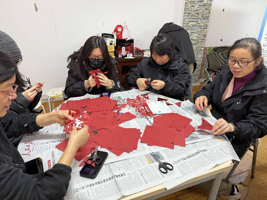 在“联墨颂春”区,党员志愿者与同学们并肩而立,挥毫泼墨、笔走龙蛇。一张张饱含祝福的“福”字、一副副寄托家国情怀的春联,在欢声笑语中逐一铺展。剪纸窗花区同样人气十足,传统纹样与红色元素巧妙融合,剪刀起落间,一幅幅寓意吉祥的窗花跃然纸上。方寸之间,文化在传承,情谊在凝聚。