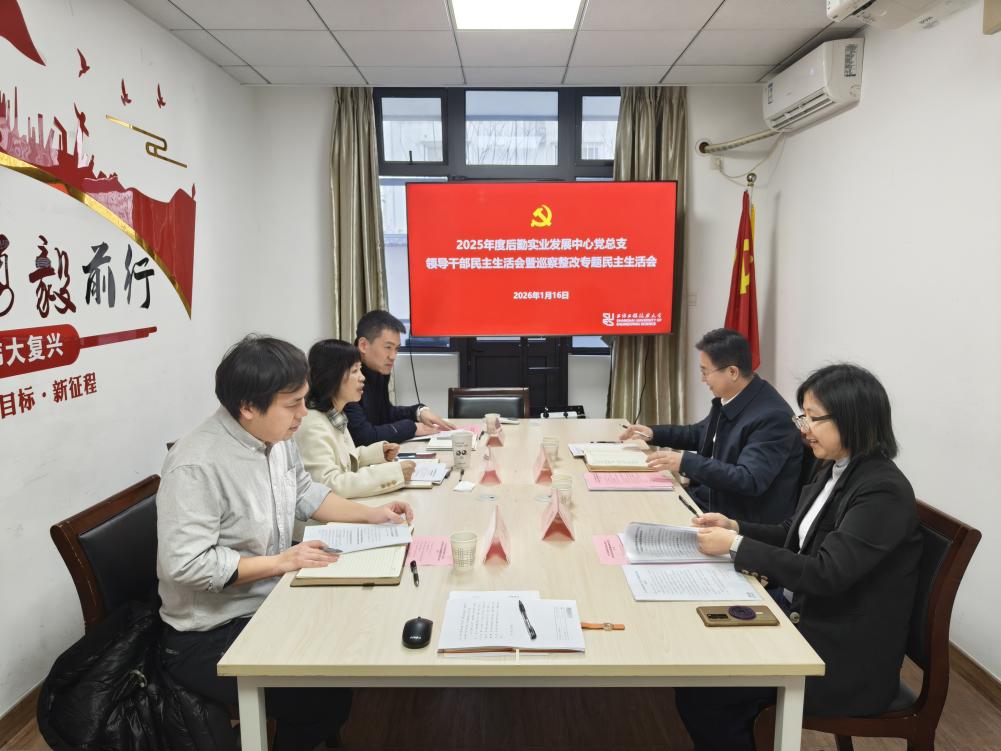 1月16日下午,后勤实业发展中心党总支在后勤综合楼113室召开2025年度党员领导干部民主生活会暨巡察整改专题民主生活会。副校长王岩松,校督导组成员、巡察工作办公室主任刘珺,后勤全体班子成员出席会议。会议由后勤实业发展中心党总支书记李军主持。